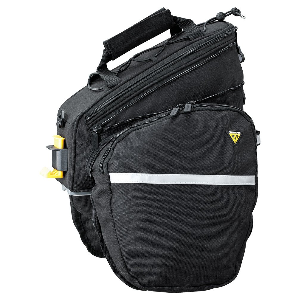 Larger capacity road TrunkBag bag, perfect for commuting, school and errands. Rigid foam insulates and holds shape. Features a large main compartment plus two zippered side compartments that zip open into full panniers and expandable multi-top. Aerodynamic shape is ideal for road and fitness bikes. Compatible with RX QuickTrack® system with side frames.