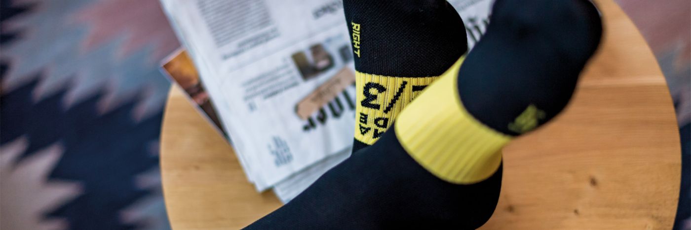 To create a midweight sock that blends comfort, support, and an element of visibility, we needed to experiment with new yarns that would be up to the task. Testing in mild spring and fall conditions led us to ultrasoft polyester yarns blended with Lycra, which delivers a light compressive hold and a touch of insulation along the foot, ankle, and lower leg using our seamless construction.