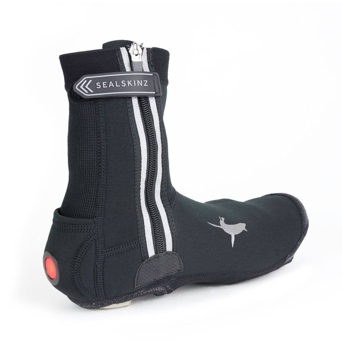 A rugged and durable cycle overshoe, featuring bright LED light in the heel and stealth reflectivity for increased visibility in low light.