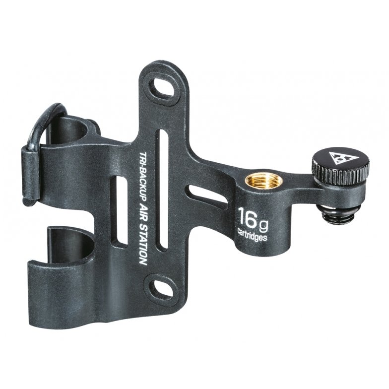 This multi-talented adaptor allows you to mount a pump, CO2 inflator and 2 spare CO2 cartridges to the Tri-BackUp mounting system.