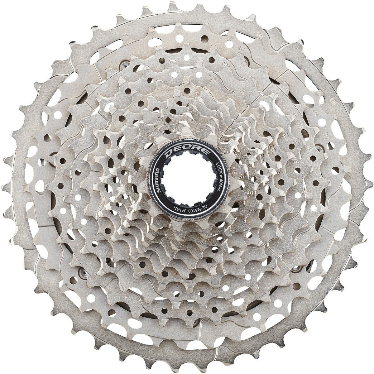 - Deore M5100 11-Speed cassette featuring light weight minimal design sprocket carrier