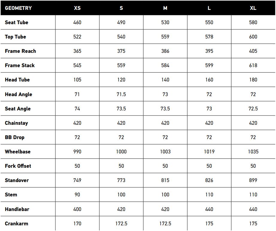 - Handlebars Genesis Alloy XS = 400MM, S/M = 420MM, L/XL = 440MM
