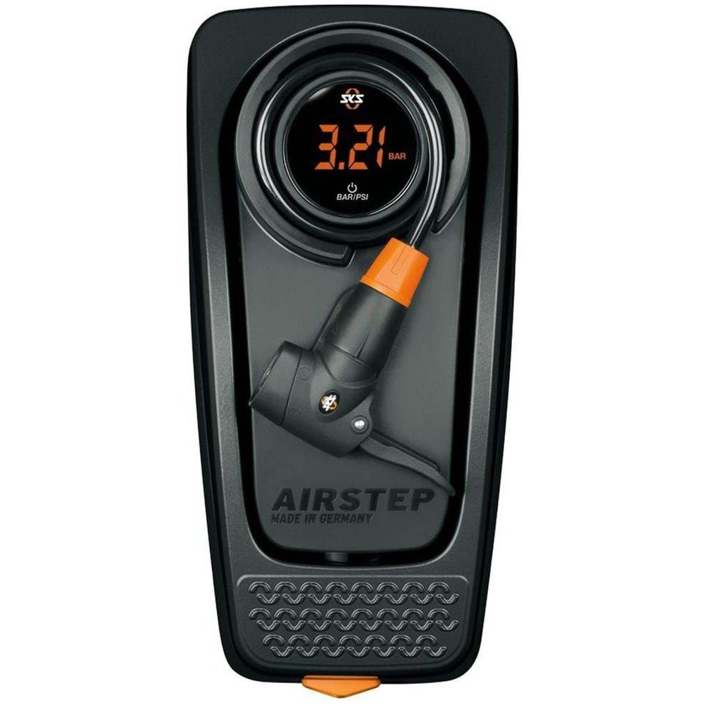 Latest technology “Made in Germany”: The digital update of the tried and tested SKS AIRSTEP foot pump impresses with a high-quality, precise digital gauge. The black LED display shows the pressure perfectly in bright orange numerals.