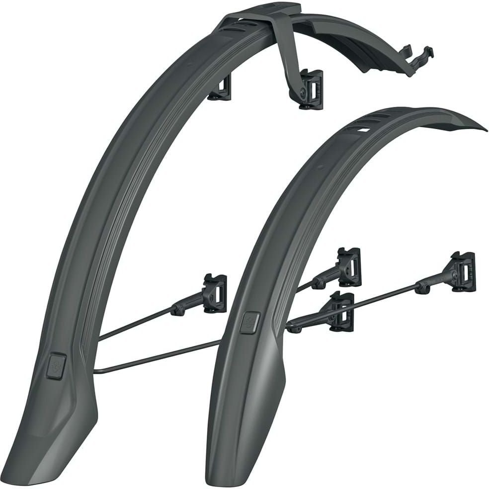 The VELOFLEXX mudguard set combines the stability of a fixed mudguard with the flexibility of a clip-on mudguard. The VELOFLEXX bridge allows the rear mudguard to be mounted at the top of the seat bar without tools, using rubber straps. This mounting solution no longer requires the brake bridge where the brake caliper is usually mounted.