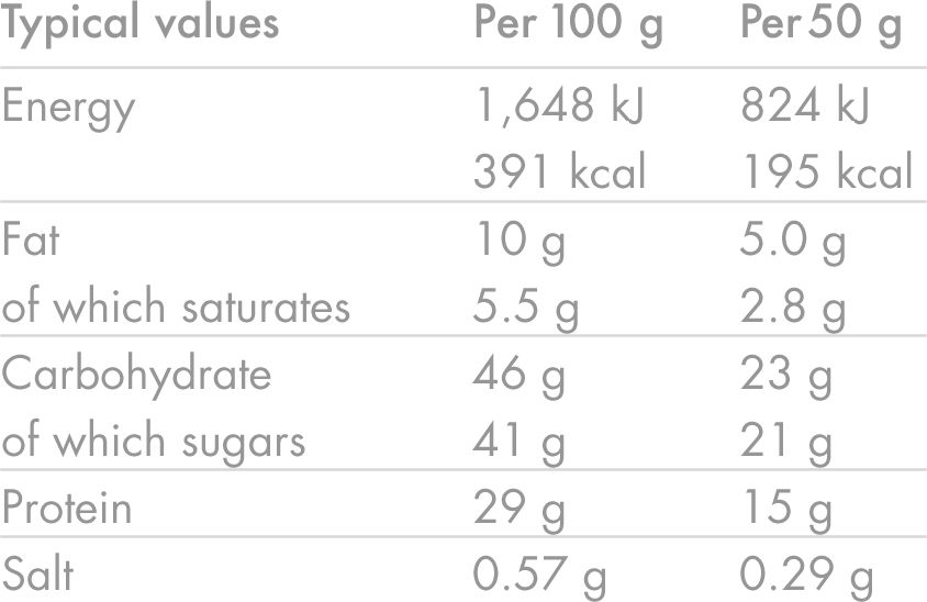Muscles become sore and stiff when they are stressed during exercise. The depletion of muscle glycogen (muscle carb stores) can impair muscle function resulting in fatigue and reduced exercise performance. The unique forms of protein and carbohydrate in Recovery Bar are chosen to ensure you recover after intense long lasting exercise and turn up ready to perform at your next training session.