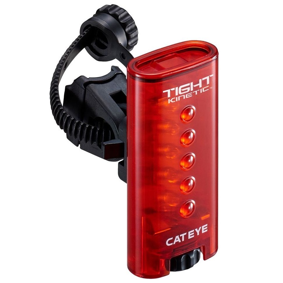 The all new Tight Kinetic rear bike light packs a punch with Cateyes Kinetic brake technology. The built in acceleration sensor for Kinetic Mode that automatically changes the light from Low or Flashing mode, to High Constant mode to perform as a traditional brake light.