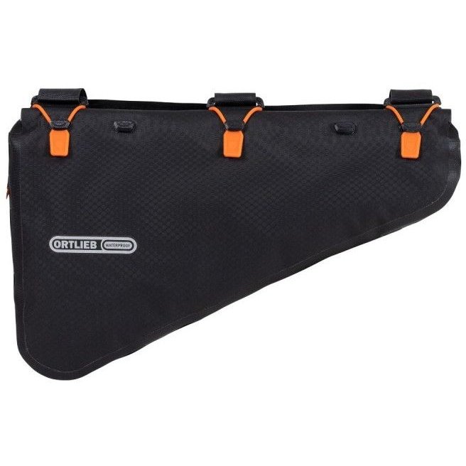 ORTLIEB’s frame bag with roll closure helps you start off your bike packing adventure well-prepared. Thanks to the waterproof roll closure —which is closed by three silicone rings— paired with the proven nylon fabric, your luggage inside the bag stays absolutely dry even in the most adverse conditions.