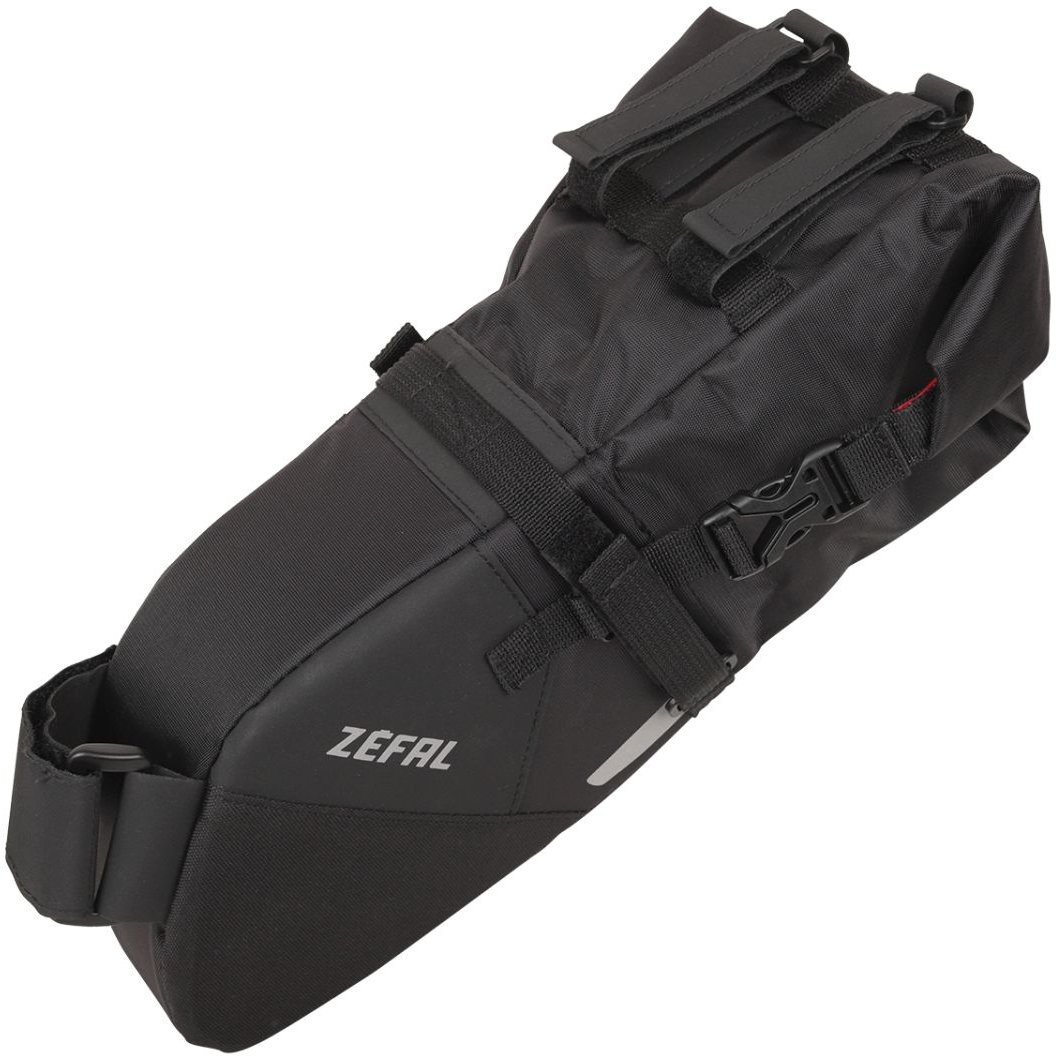 The Z Adventure R5 is a saddle bag designed to carry a large volume of items without the need for a rear rack. Equipped with several durable self-adhesive straps and anti-tear material on its base, this bag attaches to the saddle rails and seat post for optimal weight distribution on the bicycle. The 5L volume is ideal for day-long outings or for training in variable weather conditions. The Z Adventure R5 is a great alternative for those who don't want a backpack. The folding closure and waterproof fabric with heat-sealed interior can safely carry all the equipment needed for a tour.