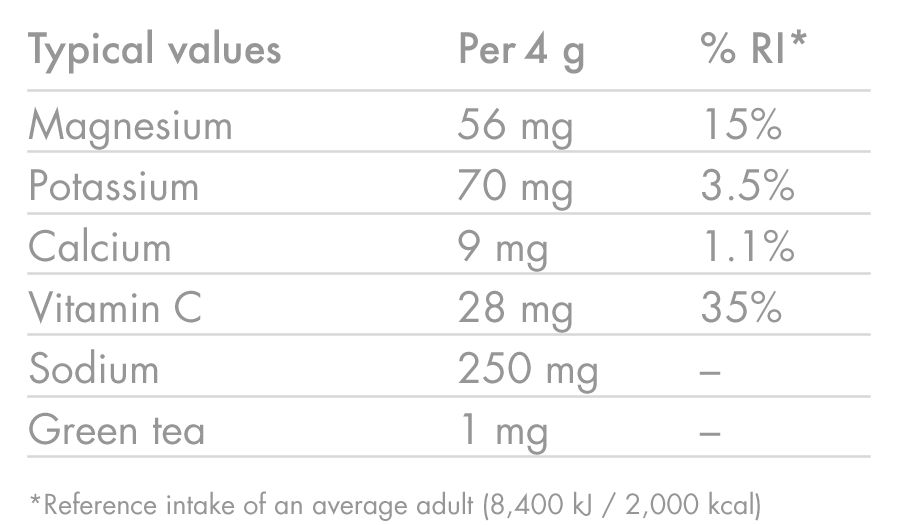 - Light & refreshing electrolyte drink with natural fruit flavours