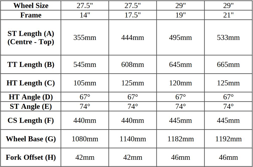 - Tyres: 14/17.5" Kenda Regio 27.5 x 2.2" 19/21" Kenda Regio 29 x 2.2"