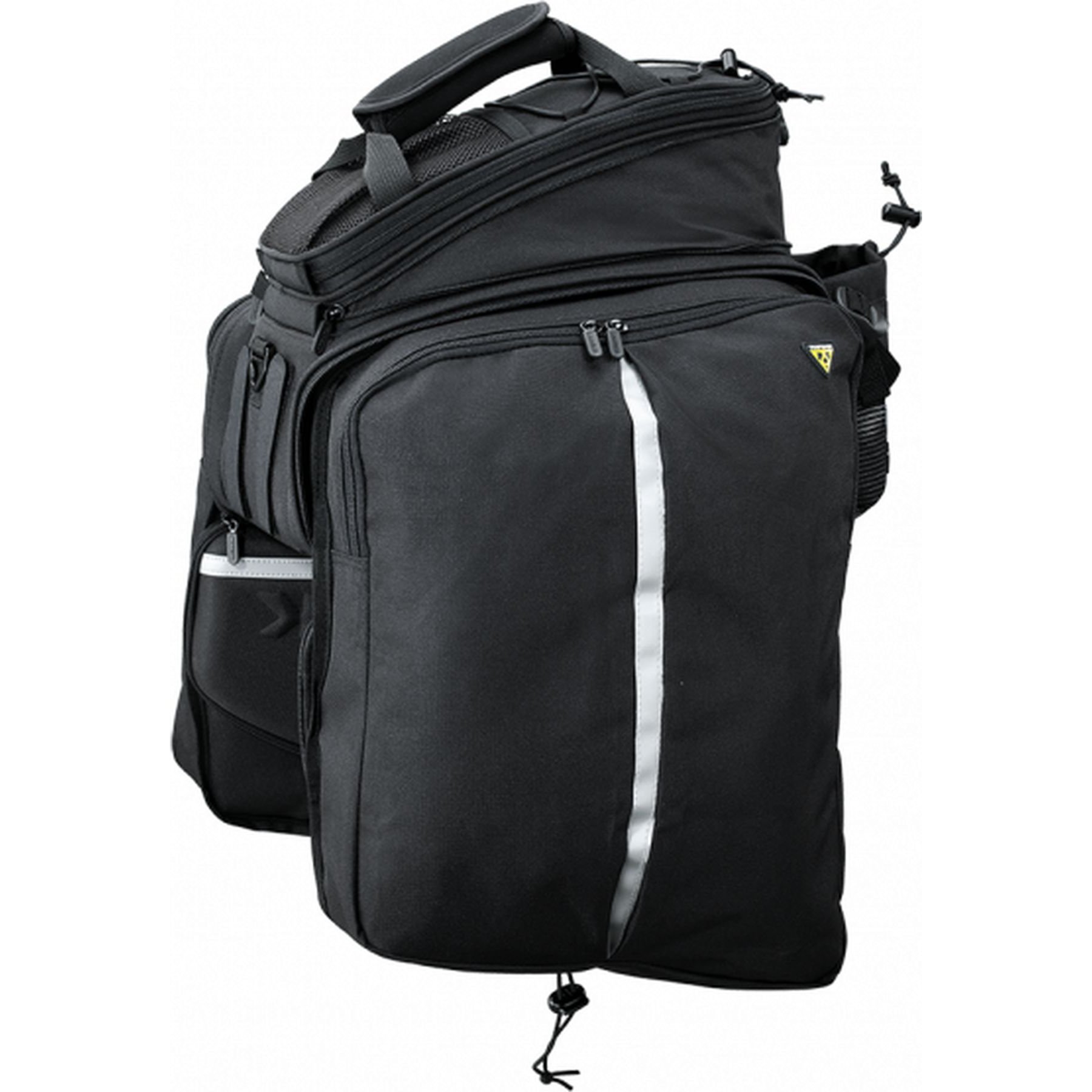 Large weather resistant trunk bag based on the popular MTX DXP, but with Velcro mounting straps. Complete with fold-out panniers, expanding top, and water bottle holder.