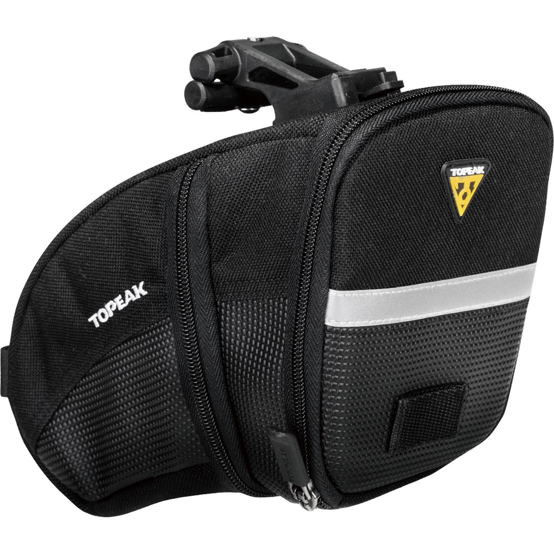 Aero shaped wedge pack with easy-to-use quick release or strap mounting system.