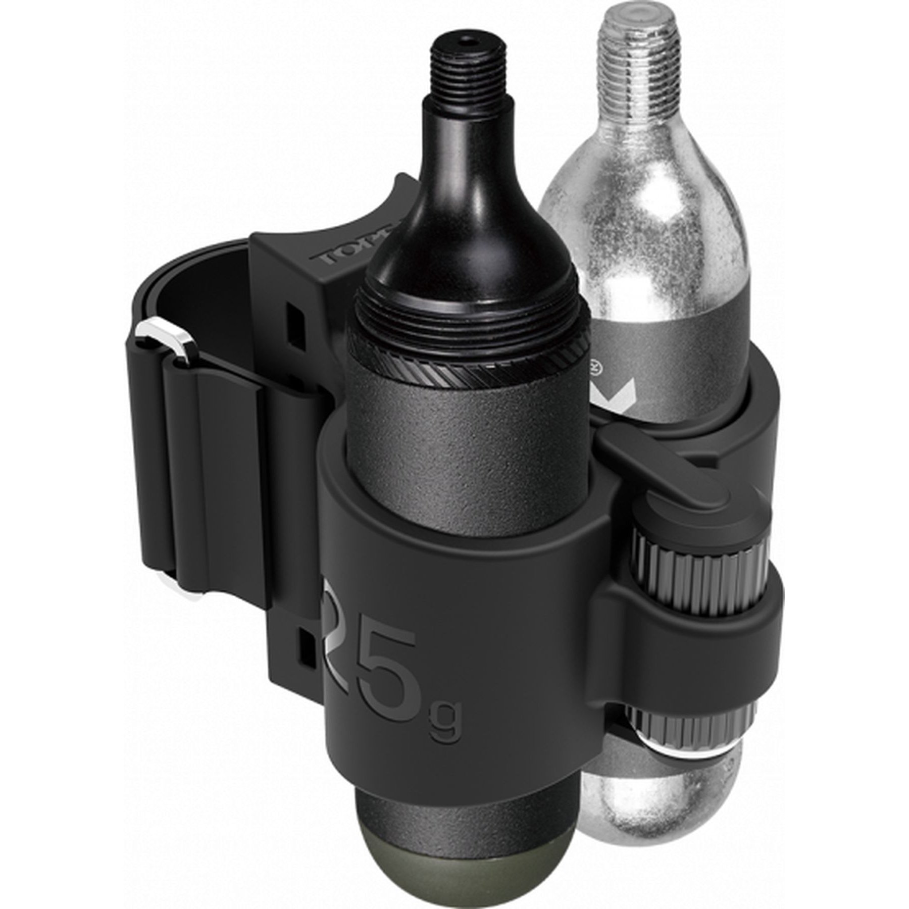 - TOOLS: Nano AirBooster CO2 inflator, TubiCartridge MT25, and one 25g CO2 cartridge INFLATOR HEAD: CNC Aluminium, fits Presta / Schrader valves