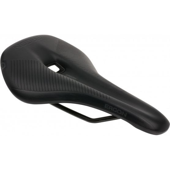 The new Ergon road saddle for men. Due to their specific pelvic anatomy men are sitting more upright on the saddle. This creates a higher pressure in the highly sensitive perineal area, which often leads to any of the varying forms of discomfort. This is where the relief concept of the SR Men saddle comes into play. Through the falling relief channel with cut-out, the resulting pressure is evenly distributed onto the bone structures (sit bone and parts of the pubic blades). The Y-shape helps keep the freedom of movement high even when riding in the low position typical for road biking.