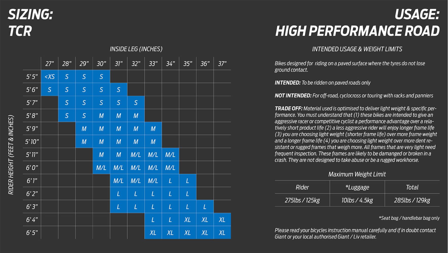 BIKE SIZE CHART