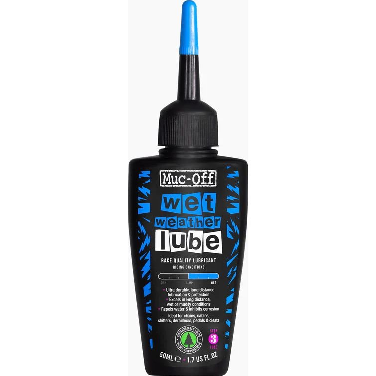 Muc-Off Wet Chain Lube is an ultra durable, long distance bicycle chain lubricant and oil that’s been specifically formulated to excel over long distances in wet or muddy conditions. Our state of the art formula has been derived from natural ingredients and made completely from renewable sources.
