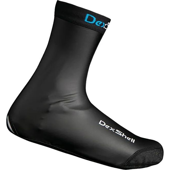The new generation of DexShell lightweight cycling overshoes are still made of windproof, waterproof, PU coated fleece fabrics for warmth, but with an innovative zipperless design to eliminate the failure of conventional zipper construction. The inside ankle portion is reinforced with abrasion resistant panel for scraping guard. The extended leg section protects against road splash that comes often with riding in wet weather. The elastic cuff band with silicone gripper inside ensures a slip-free fit. The open sole with hook and loop strap fits most cycling shoes. The reflective heel stripe design makes you visible in the dark.