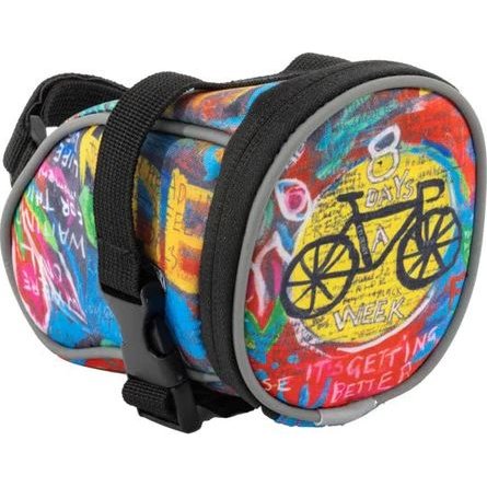 Attaching easily under your saddle with Velcro straps and adjustable buckles, it allows you to carry your spare tools, tubes, tyre levers, snacks, cash, keys, a mini pump, and anything else with confidence. For added safety and visibility it also features reflective piping on all seams and an original stylish Cycology artwork design.