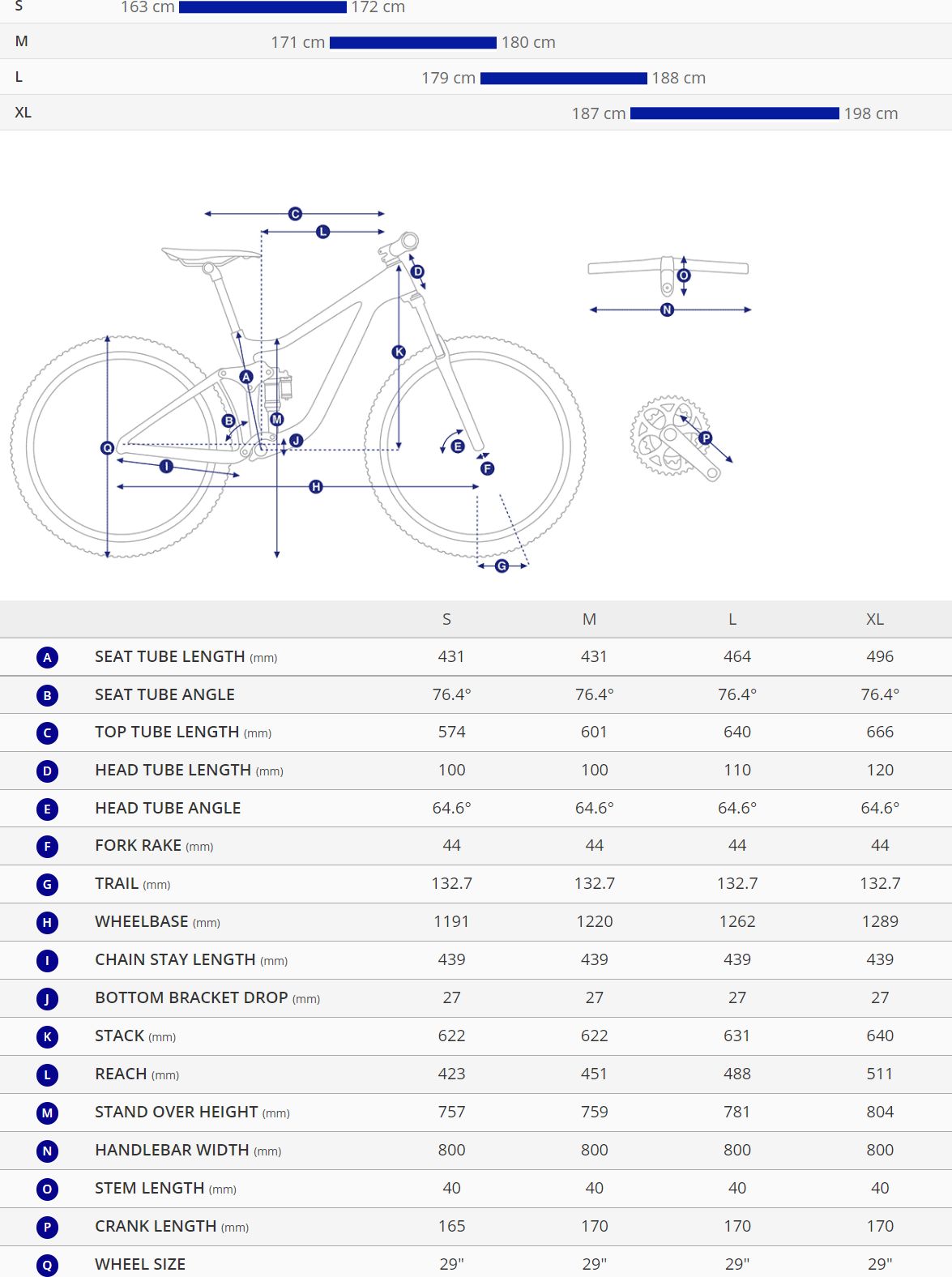 - Seatpost: TranzX travel-adjustable dropper, remote S: 120-150mm travel / 30.9 x 459mm M: 140-170mm travel / 30.9 x 499mm L: 170-200mm travel / 30.9 x 525mm XL: 170-200mm travel / 30.9 x 525mm