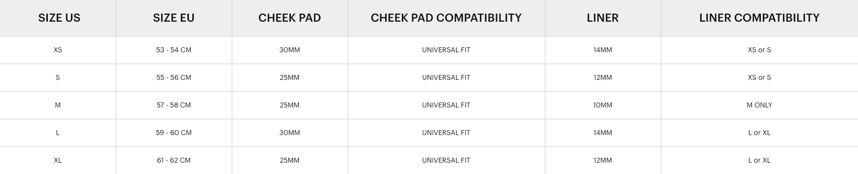 - Comfort Liner: Washable, antibacterial liner, cheek pads and chin strap covers.
