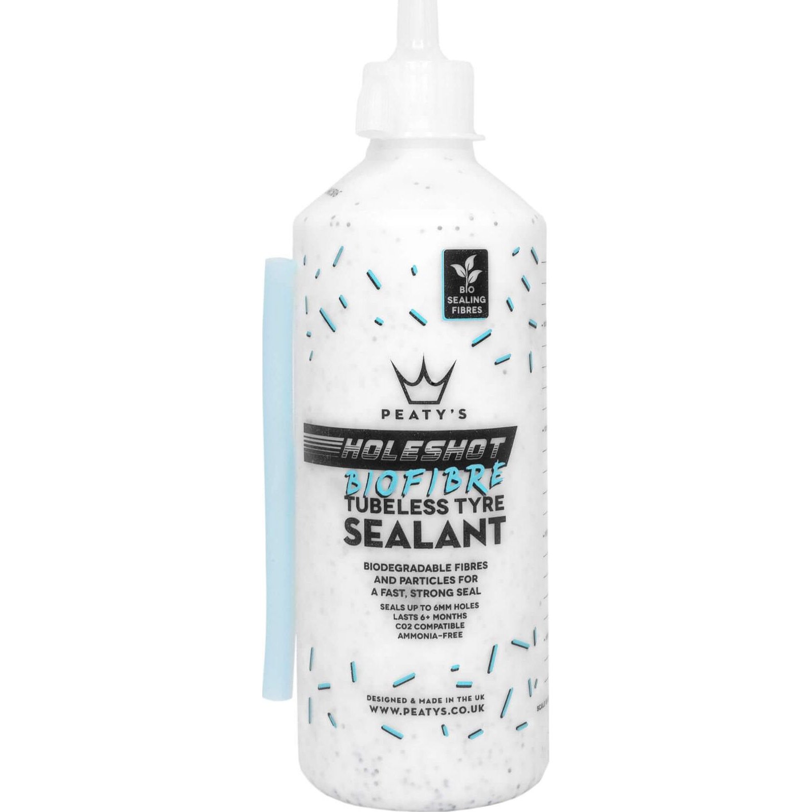 Developed alongside World Cup mechanics and world champion racers. Peaty's Holeshot Tubeless Sealant is packed full of biodegradable fibres & sealing particles to give a fast and strong seal. Using the latest fast-acting latex, our water-based sealant is ammonia-free, non-hazardous and lasts up to 6 months in the tyre in temperate climates*. It won't ball up in the tyre and is easily washed out. Our biodegradable fibres and particles bind together with the fast-acting latex to create a clot (like platelets in your blood) to quickly & effectively seal holes and tears up to 6mm.