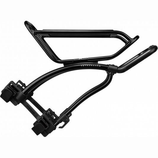The perfect quick-mount rear rack system attaches to road, cross, hybrid or touring bike seatstays. This one-size-fits-all rear rack features an innovative top plate that adjusts to level independent the seatstay angle. Integrated QuickTrack® system allows Topeak TrunkBags to slide and lock into place and release with a the push of a button. Innovative hook and loop strap mounting system cinches down tight to keep the load stable and allow mounting on a wide range of bikes.