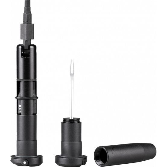 Two easily accessible hidden compact tool kits housed in your handlebar ends. The perfect tool companions for your road bike. The kits comes with of 1.5mm plug insertion tool for tubeless tyre repairment and a set of 4 / 5 / 6 / 10mm Allen bits for bike maintenance.