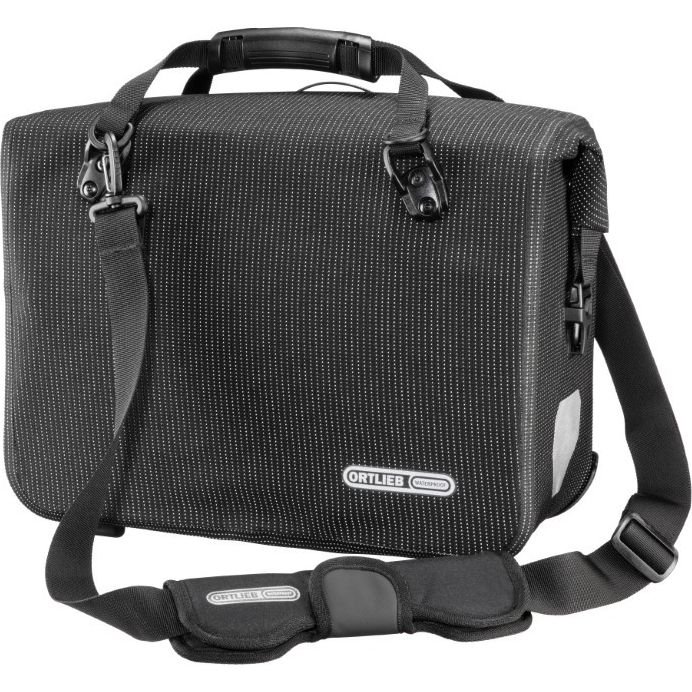 - ORTLIEB offers highly reflective solutions in the range of waterproof bike panniers: the High Visibility Line! The PU laminated Cordura fabric in black is interwoven with highly luminous reflective yarn.