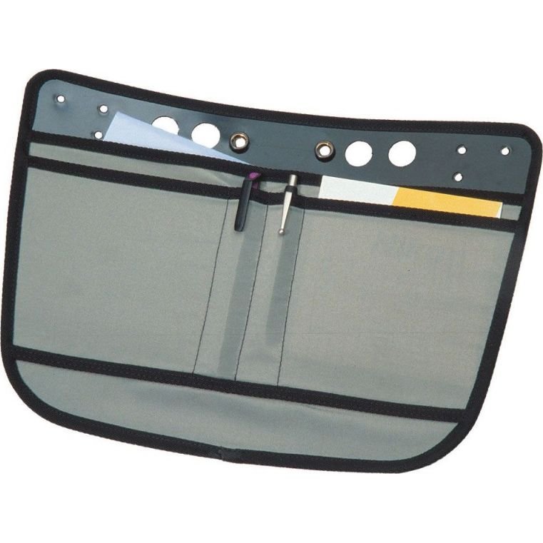 The organiser keeps documents tidy and protected inside your courier bag. One size A4 folder, 2 small pockets and 2 pen slots help to keep items in place. The organiser is fixed to the back panel by push buttons.