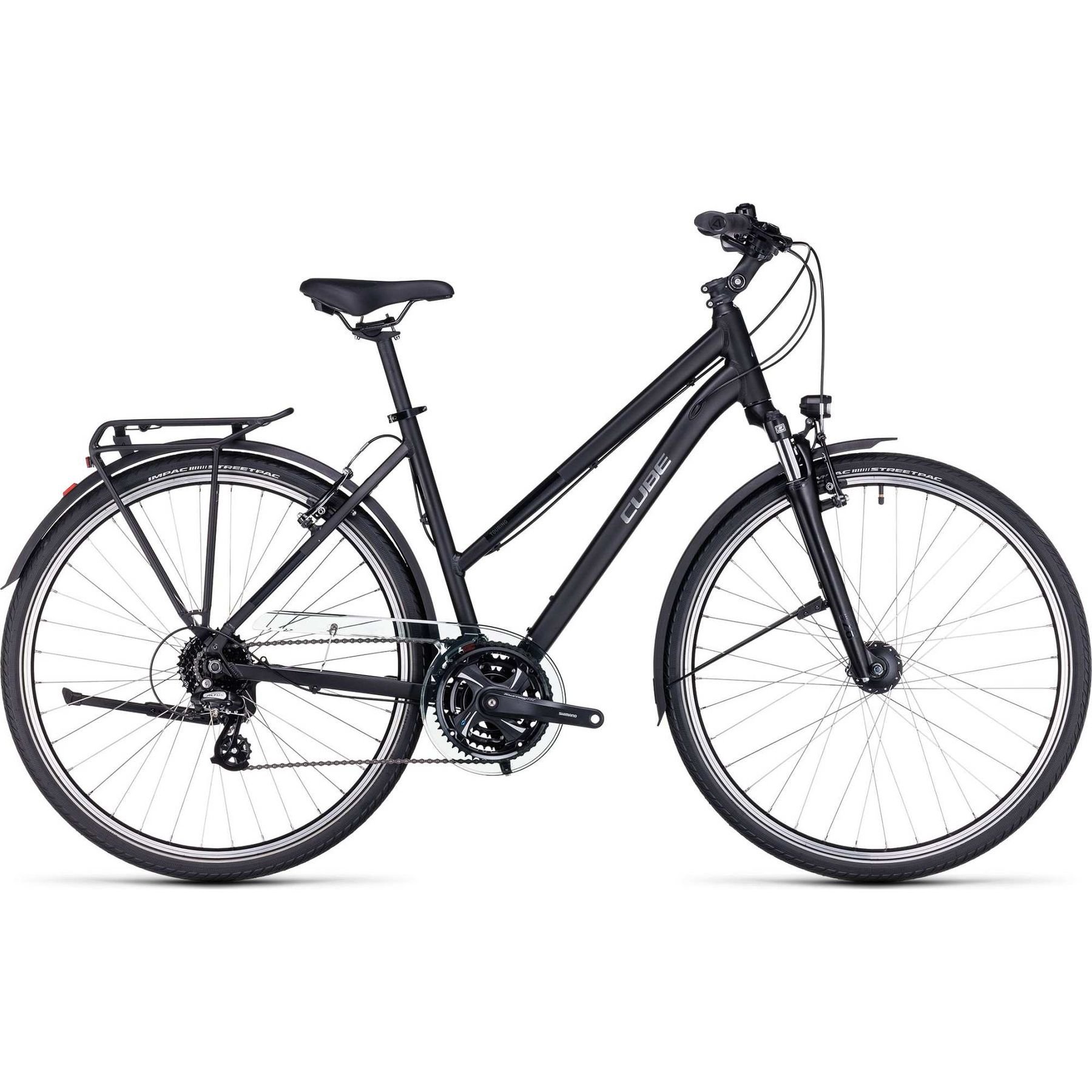 Wherever you're headed, you need a bike that's comfortable, versatile, safe and fun to ride. The CUBE Touring ticks all the boxes. Its Efficient Comfort Geometry and smooth Suntour suspension fork make light work of potholed roads. A full complement of accessories – including our neat luggage carrier, full-length mudguards, dynamo-powered lights and kickstand – means you're all set for any journey. Thorough in-house testing is your guarantee of safety and longevity. And slick 3x8 Shimano gears with light, powerful rim brakes make every ride a pleasure.