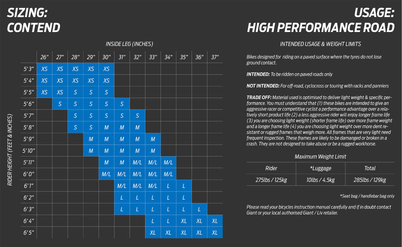 BIKE SIZE CHART