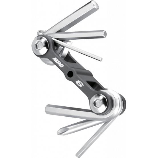 Minimalist one piece ultra-light folding tool. 6 hardened steel tools fold to compact size in an extruded alloy body. Opening all tools gives extra leverage in use.