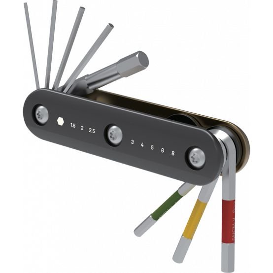 he Topeak Hex Combo Multitool is constructed of high tensile steel for improved strength and longer tool life. Hex Combo combines the most commonly used hex sizes in a convenient bent tool with a durable, comfortable and soft aluminium body. The coded 4/5/6 mm Allen keys make identification easy and the built-in key ring makes it convenient to hang it up.