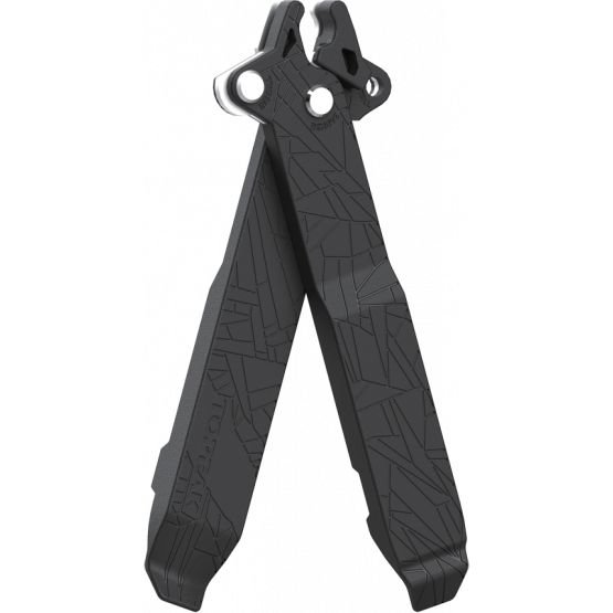 An ingenious multifunction tool! Two tyre levers connect to form power link pliers for removing or installing a chain's master link. Integrated removing or installing master link.