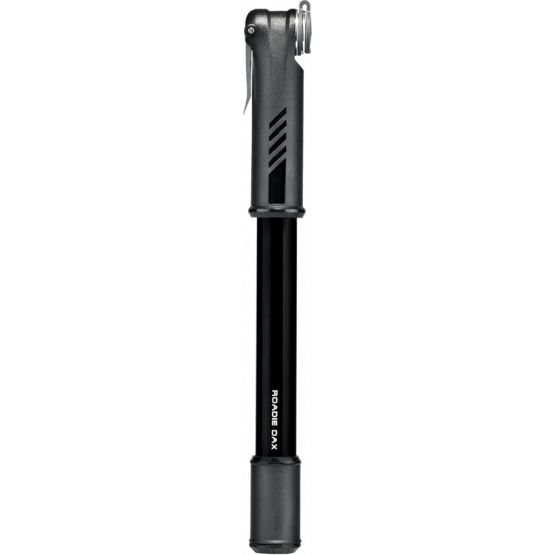 The Roadie DAX inflates high pressure road tyres fast. Dual-Action (DA) doubles volume by inflating on both the push and pull strokes. Integrated dust cap keeps pump head clean and thumb lock lever insures air-tight seal.