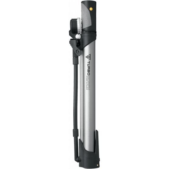 - Folding foot support and flexible hose easily converts frame pump into a roadside floor pump