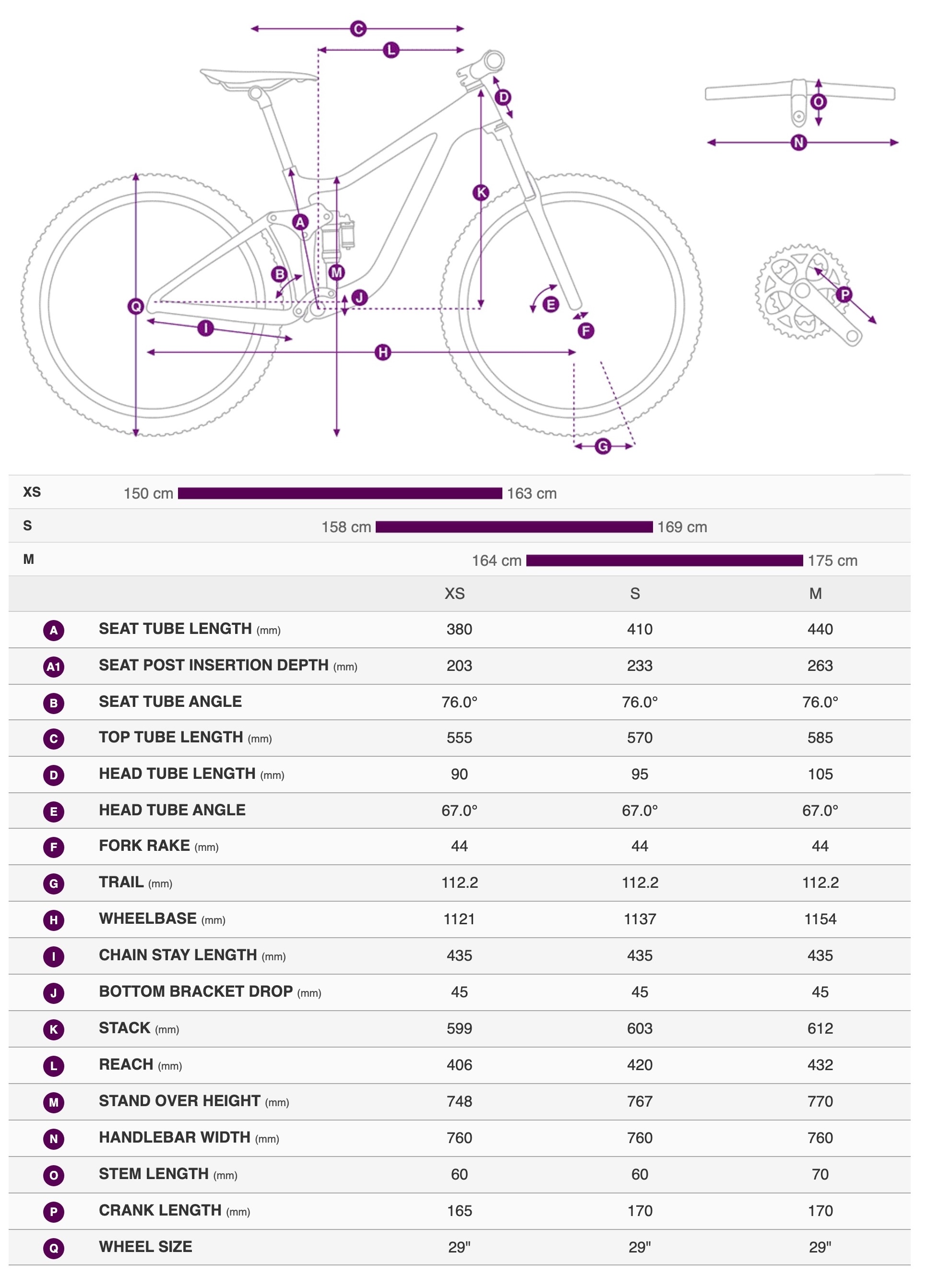- STABILITY IS MASTERY: Roll over just about anything on 29-inch wheels designed for stability and efficiency. Updated geometry provides a longer reach, putting you in a lower and more aggressive body position. A steeper seat tube angle increases pedaling efficiency on even the steepest climbs. And the modified cockpit includes a 35mm composite handlebar and alloy stem for steering precision.