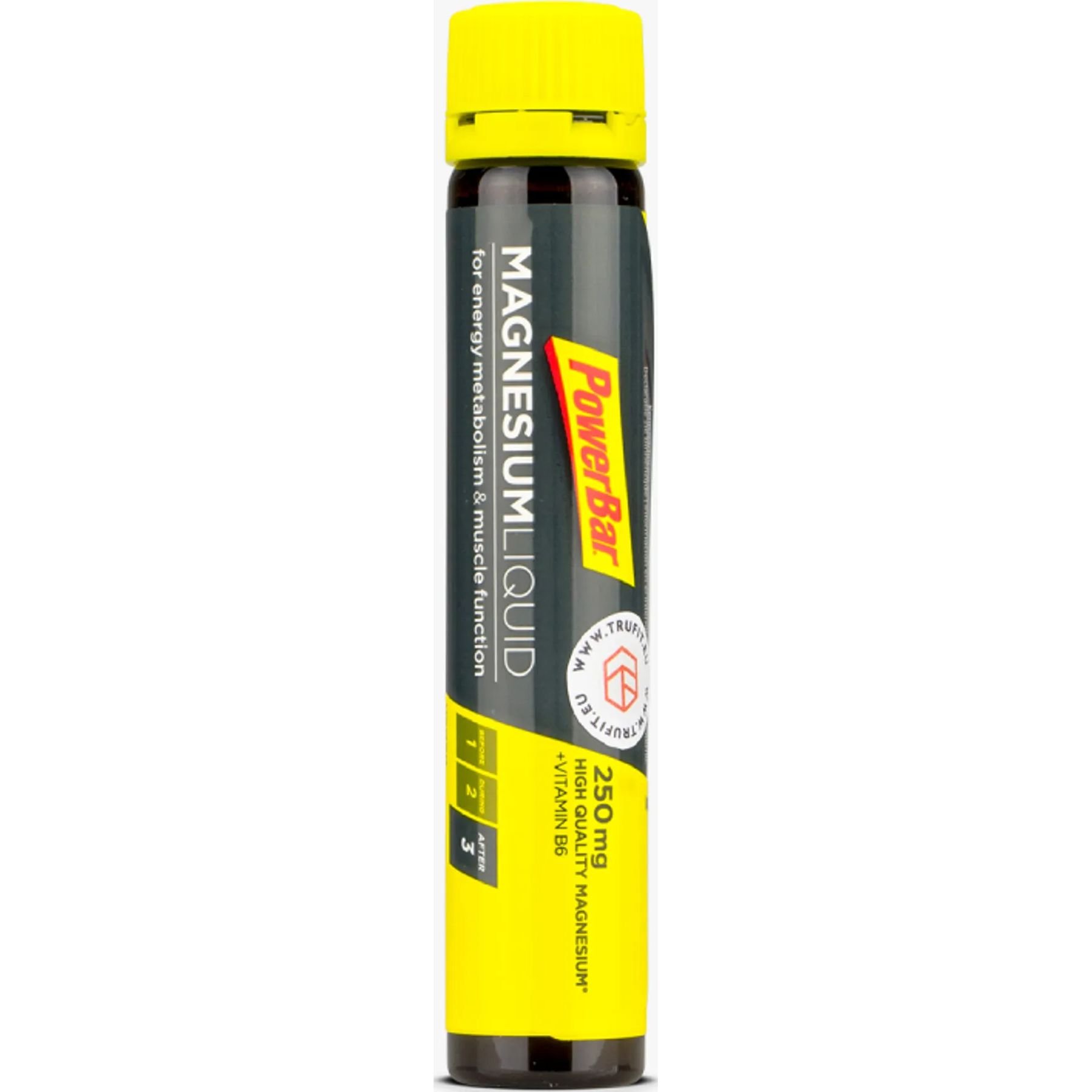 Magnesium is important to support your energy metabolism and normal muscle function. Further, it supports the reduction of tiredness and fatigue. Magnesium is one of the 5 electrolytes that your body loses most while sweating. As sportsman, you should assure a sufficient supply of Magnesium. One ampoule of PowerBar MAGNESIUM liquid serves you with 250 mg high quality magnesium plus vitamin B6.