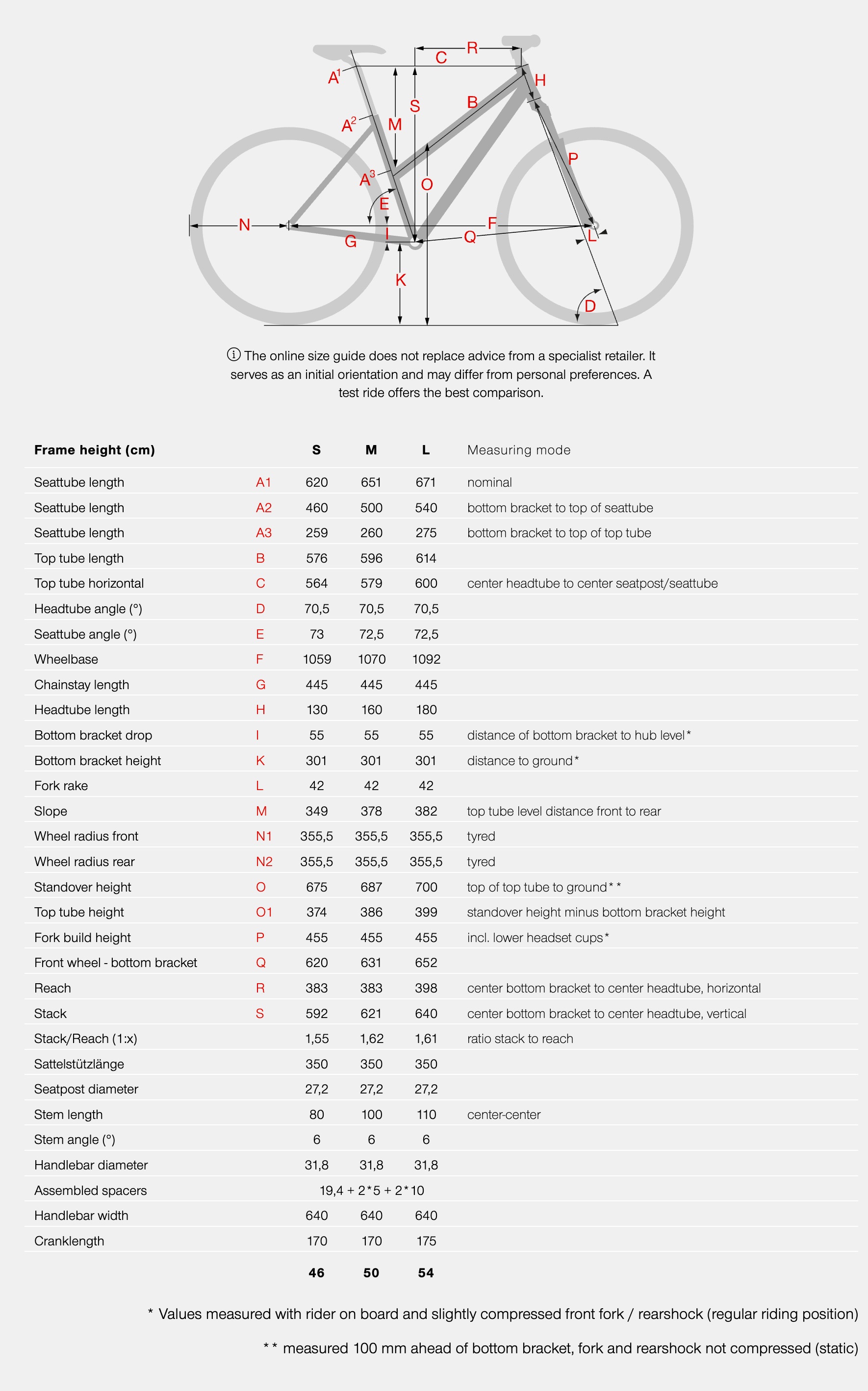 BIKE SIZE CHART