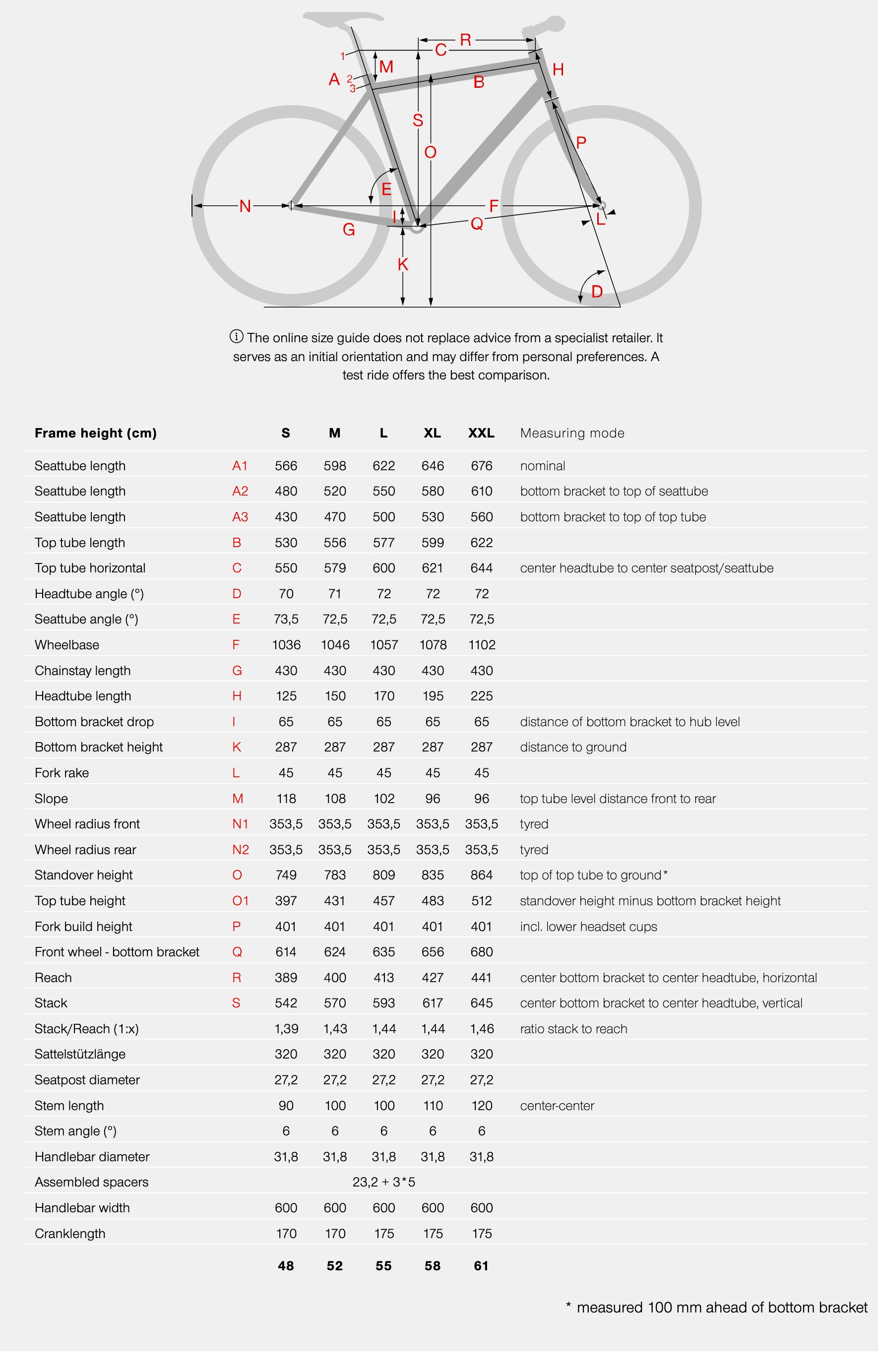 BIKE SIZE CHART