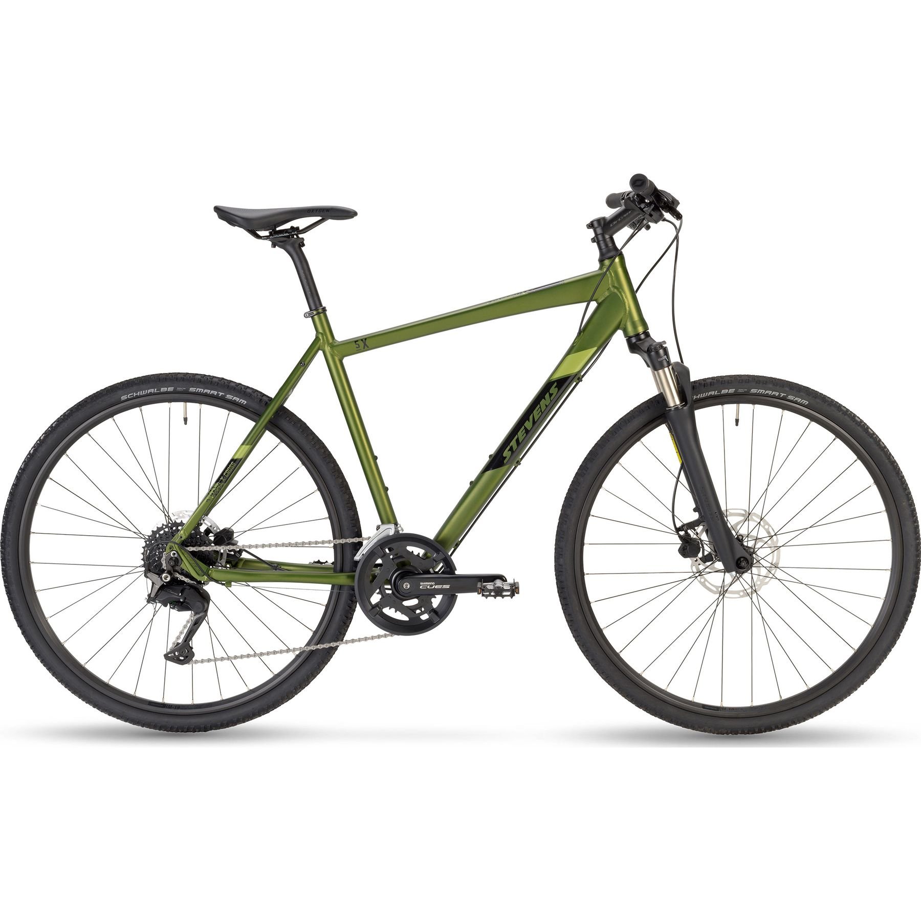 The 5X comes across as sleek yet comfortable. With our lightweight, triple end-reinforced aluminium frame and the finely responsive suspension fork. The new Shimano CUES Linkglide groupset for smooth gear changes. The Schwalbe tyres whiz smoothly over any solid surface – and nothing can stop them except the powerful hydraulic brakes with their shiny discs.