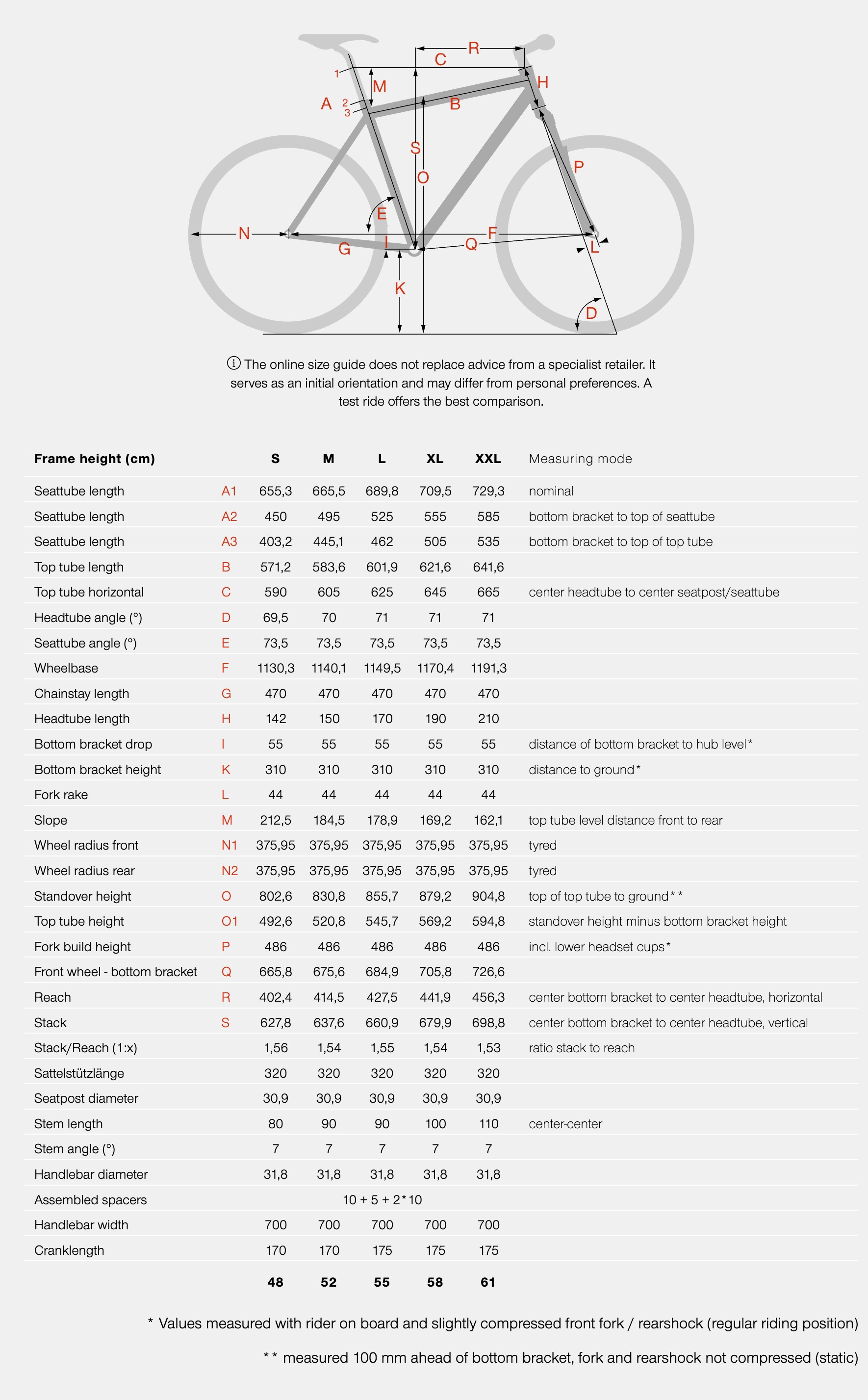 BIKE SIZE CHART