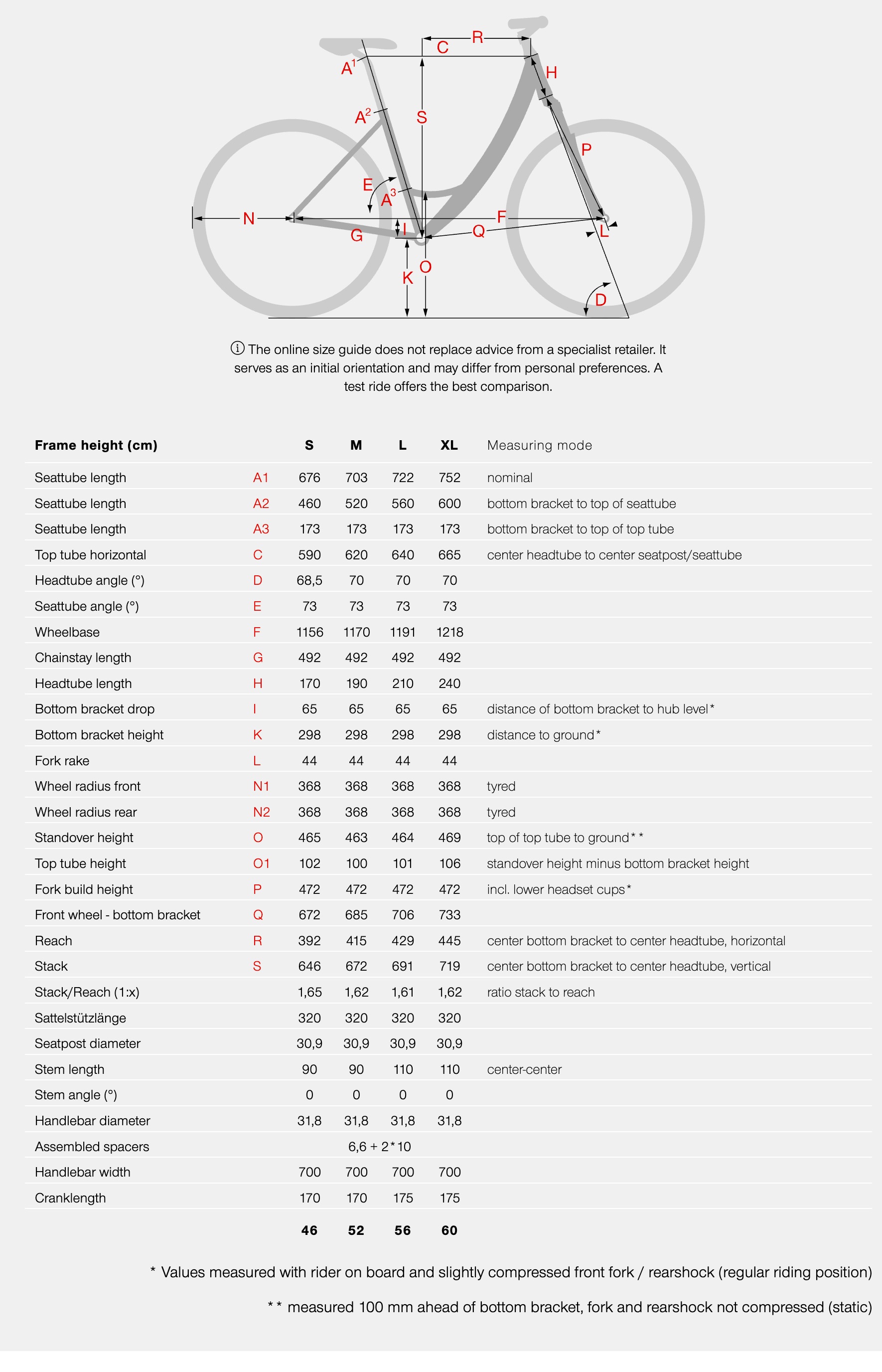 BIKE SIZE CHART