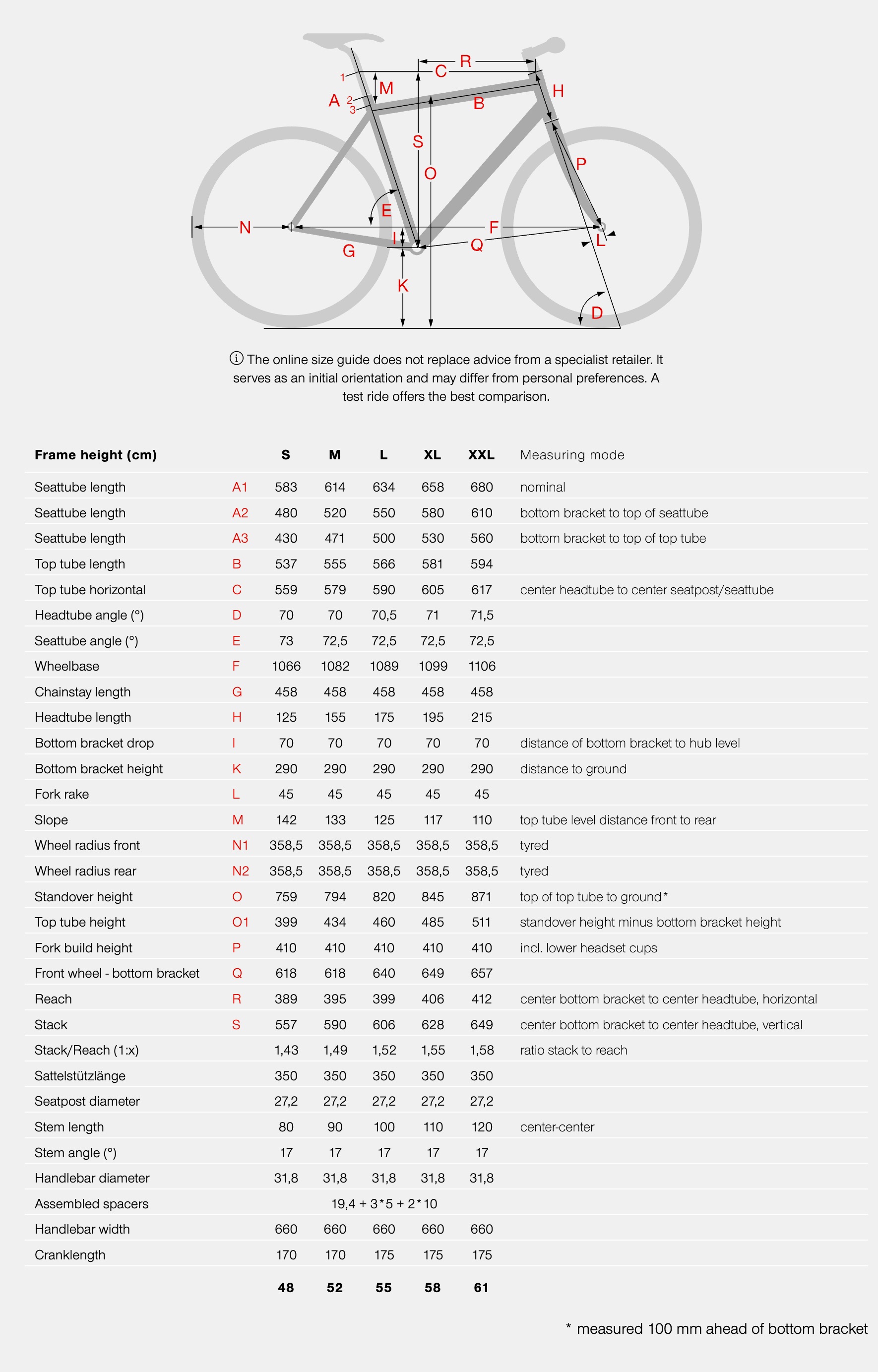 BIKE SIZE CHART
