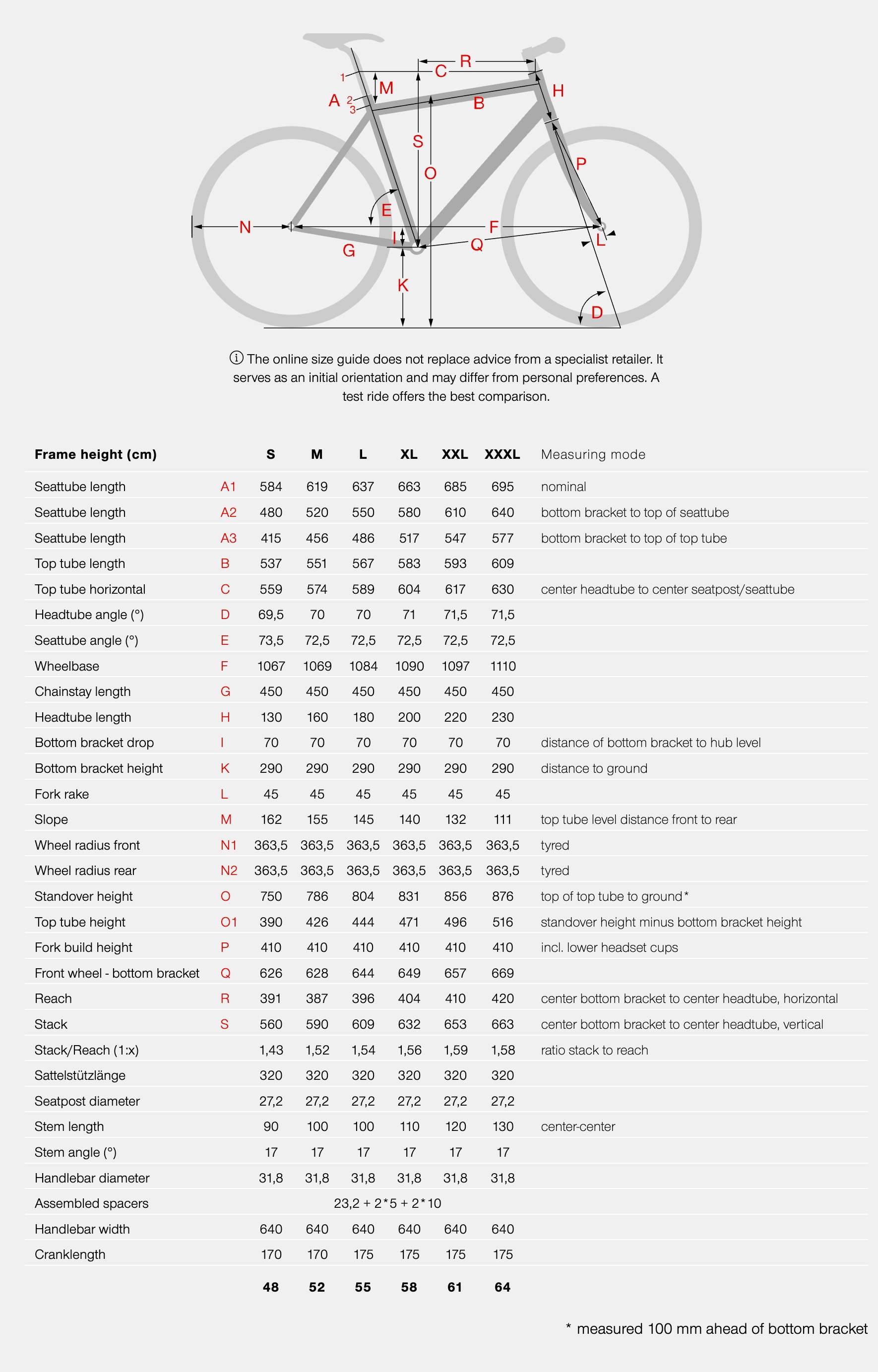 BIKE SIZE CHART