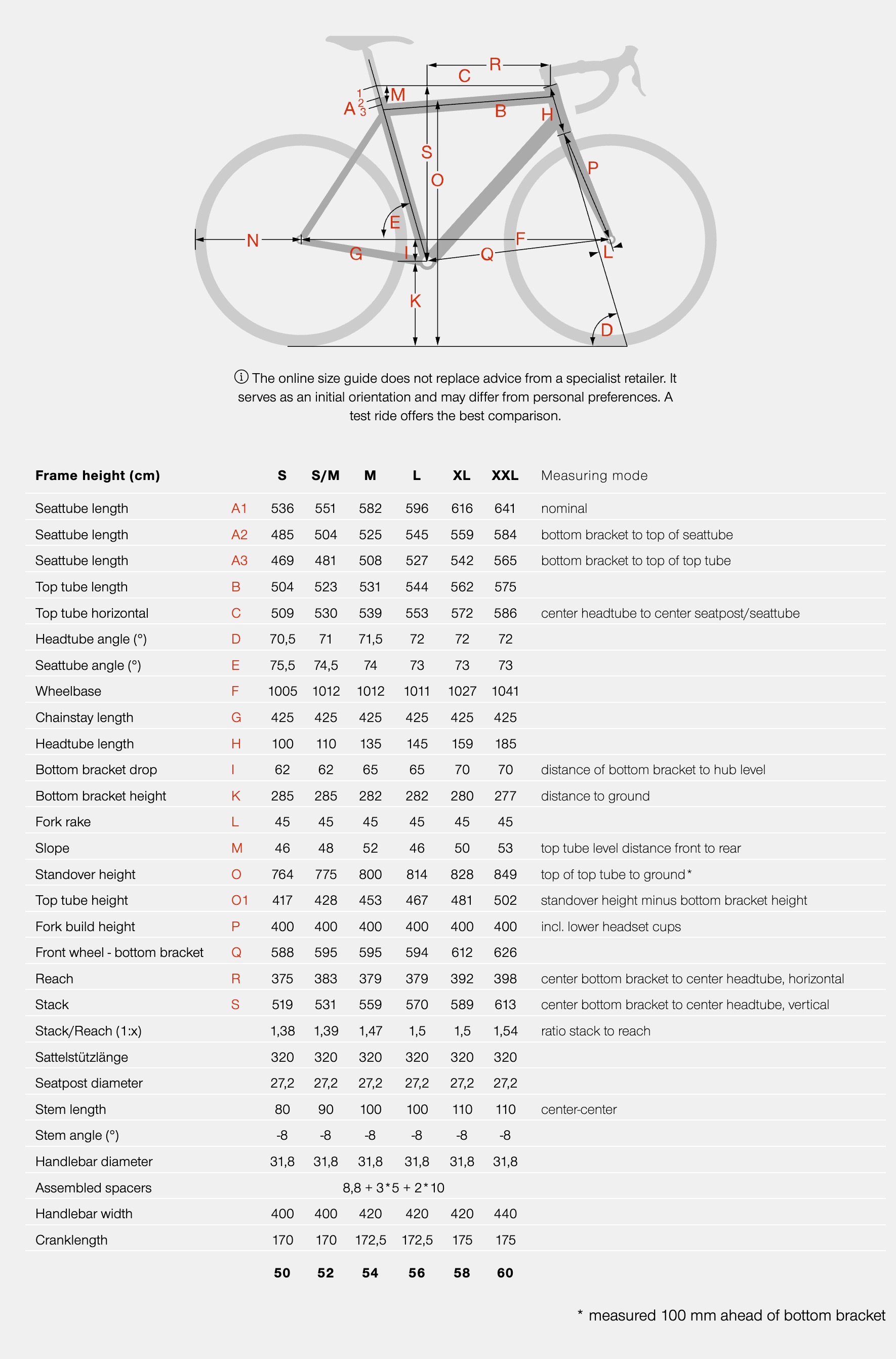 BIKE SIZE CHART
