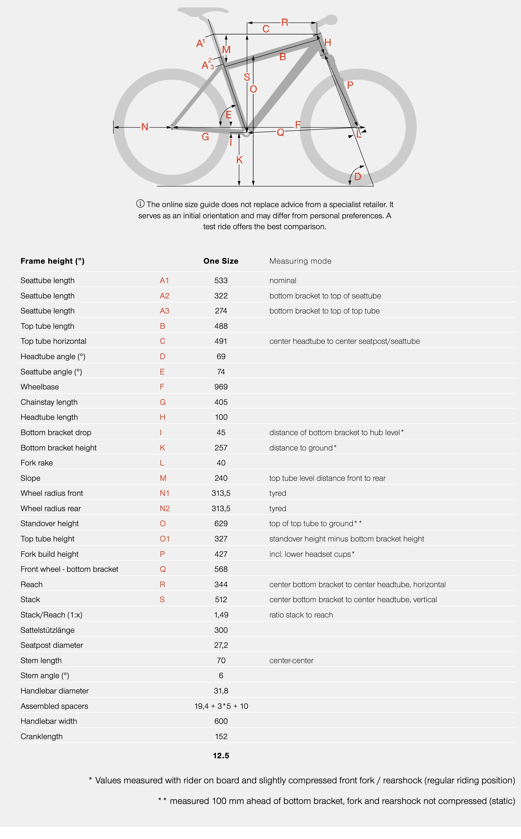 BIKE SIZE CHART