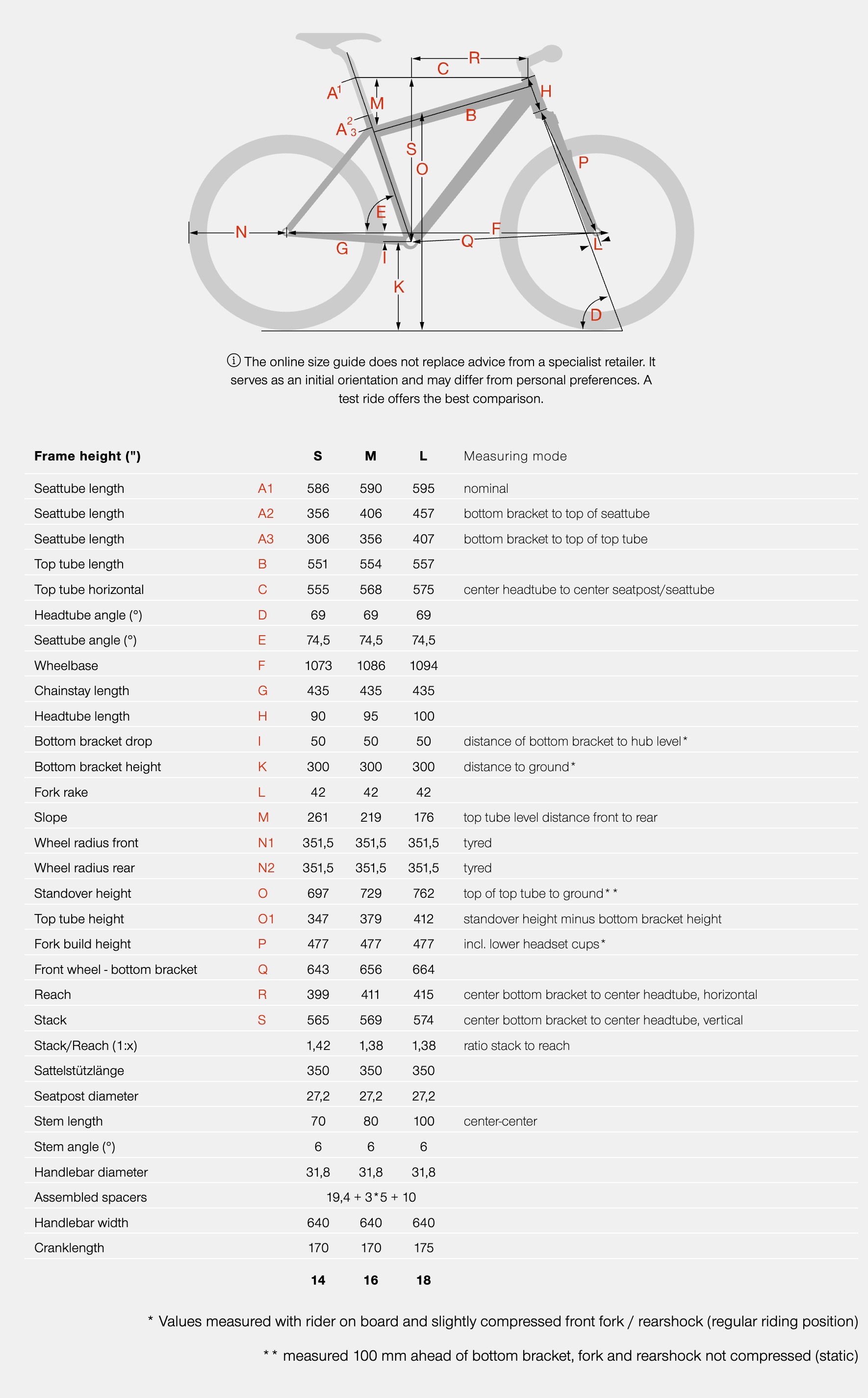 BIKE SIZE CHART