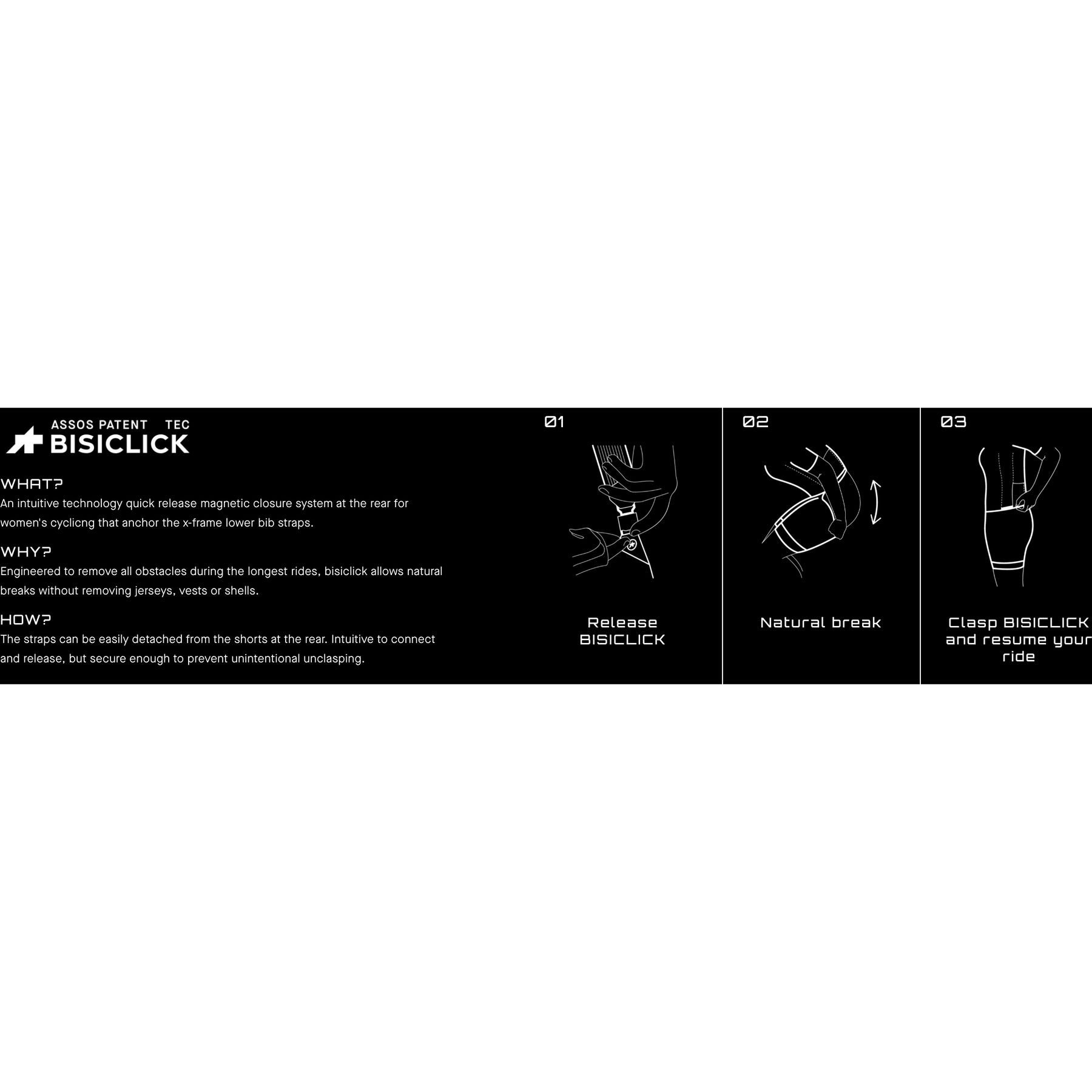 - Bisiclick:Twin magnetic closures anchor the lower bib straps. Intuitive to connect and release, but secure enough to prevent unintentional unclasping.