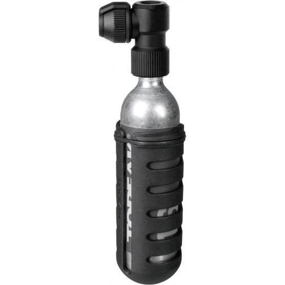 An extremely compact, lightweight and easy-to-use CO2 inflator. Precision CNC machined aluminum inflator fits Presta and Schrader valves and works with threaded 16g or 25g cartridges. Simply screw the cartridge in tight and then push the head onto the valve, unscrew the cartridge half a turn to release the CO2 cartridge.